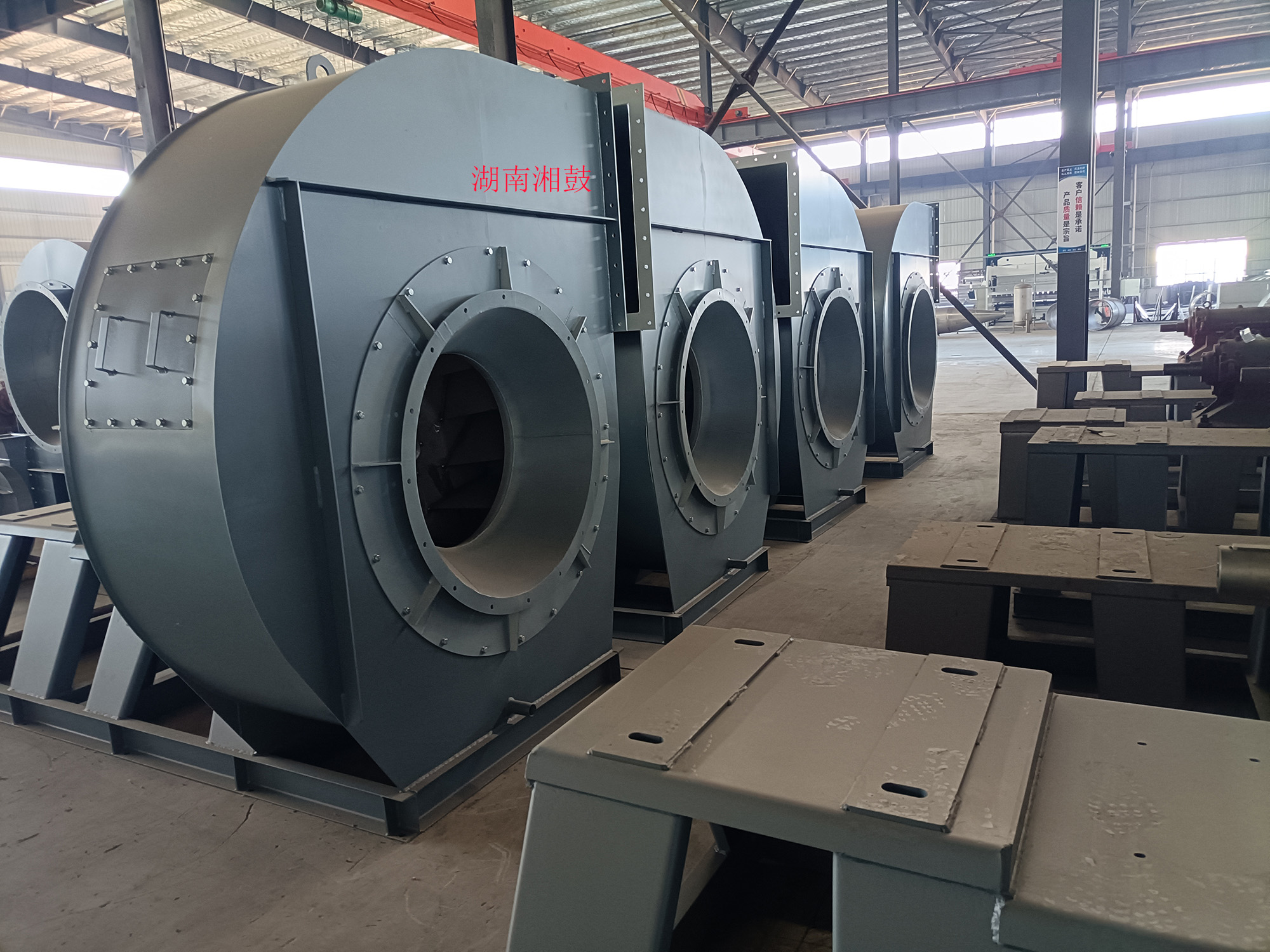 湖南湘鼓鼓風機制造有限公司(長沙第二風機廠)原廠建于1978年,機械部定點生產風機的企業,原設有長沙地區風機檢測站。于2016年重組遷入湖南益陽。公司占地32畝,擁有各類主要加工檢測設備100余臺套,是目前湖南省具一定規模的鼓風機及配件制造廠家。現已生產離心式通風機(又稱離心風機)和羅茨鼓風機二大系列,按用途分為高溫風機、不銹鋼高溫風機、不銹鋼離心通風機、造紙通風機、襯膠防腐風機、除塵風機、脫硫塔風機、增壓風機、鍋爐風機、掃路車風機、貼陶瓷耐磨風機、窯爐風機(磚窯風機)、煤粉灰輸送風機、燃燒器助燃鼓風機、斜槽高壓風機、化鐵爐風機、造氣鼓風機、養殖增氧風機、污水處理曝氣鼓風機、脫硫氧化鼓風機、氣力輸送鼓風機、印刷送風機、電鍍槽鼓風機等三十多個系列通用型及十多個系列特種型風機,按國標型號分:4-72,T4-72,4-68,4-79,9-19,9-26,8-09,9-12,C6-48,C6-46,C4-73,GY4-68,GY4-73,GY6-51,GY8-39,GY9-38,GY6-30,GY6-48,GY6-41,GY5-51,GY5-47,GY5-48,GD30K2-12,以及XG80-500口徑的羅茨鼓風機。更多產品詳細介紹在首頁菜單檔上的產品中心    http://www.cshfhb.com/pclass/?classa=1